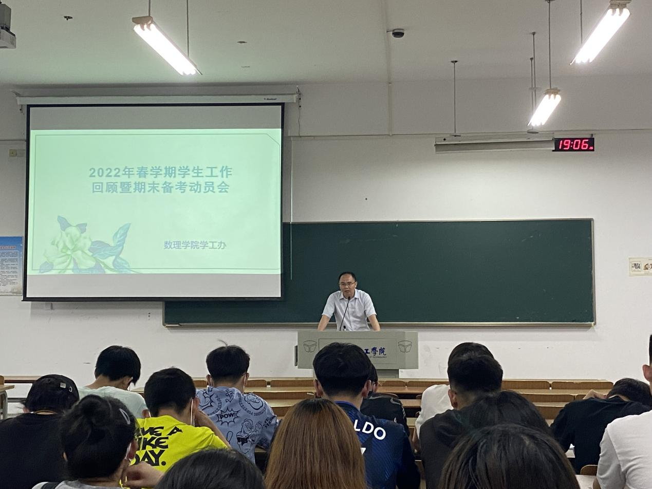 6月2日晚,数理学院学工办在博学楼B406室召开2021级学生工作总结班会。学院党总支书记魏伟华出席并讲话,2021级全体在校生参加会议,学工办主任、辅导员孙杰主持主题班会。