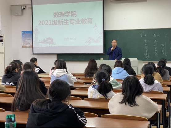 为使新生深入了解专业课程,尽快适应大学生活,明确未来发展方向,2021年10月20日、27日下午,在博学楼D509教室,数理学院为首届本科新生开展系列入学专业教育。数理学院院长薛长峰、党总支书记魏伟华、副院长徐宁、专业负责人、新生班主任、辅导员及2021级全体新生参加。