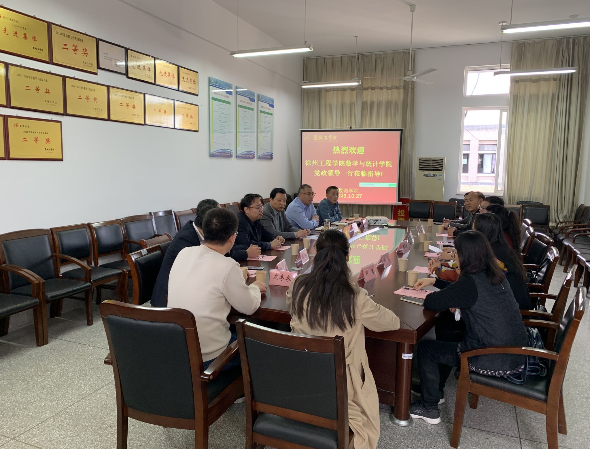 10月27日下午,徐州工程学院数学与统计学院苏有慧院长、赵志超书记一行6人来我院调研交流。交流会在博学楼B512召开,院长薛长峰、副院长徐宁以及科研办、专业系主任等相关负责人参加交流会。