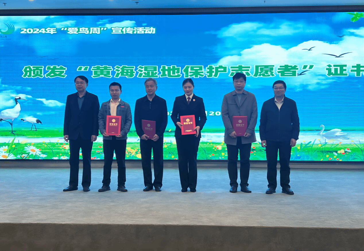 启动仪式上,奚新国为2024年春季黄渤海水鸟同步调查江苏区域调查单位授旗,Kaiyun官方网站支书记魏伟华与珍禽自然保护区管理处副主任陈志洲共同为盐城工学院大学生志愿服务实践基地揭牌,有关单位负责同志为数理学院黄小钢老师等志愿者代表颁发“黄海湿地保护志愿者”证书。本次活动还邀请了来自盐城市田家炳中学新疆班的同学们前来研学并由学生代表宣读《爱鸟护鸟倡议书》,倡导共同践行民族团结、绿色发展理念。