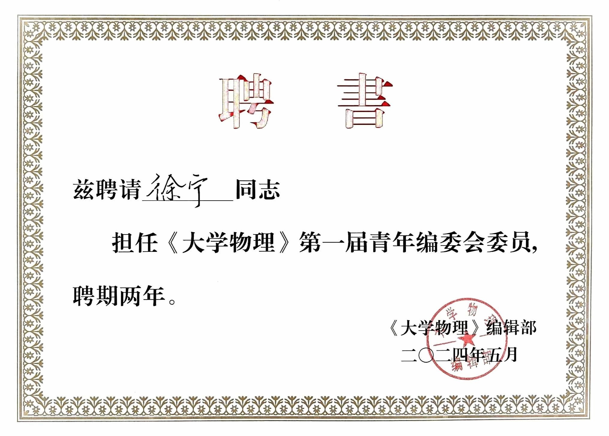 近日,2024 高等学校物理教学创新与发展研讨会暨《大学物理》编委会扩大会议在苏州科技大学顺利召开,会上,徐宁教授以《大学物理在线开放课程的建设和使用》为主题,介绍了盐城工学院基础物理教学团队关于大学物理课程的资源建设、教学改革成效等。会议期间,通过编委会审核和投票,徐宁教授成功当选《大学物理》杂志青年编委,聘期两年。