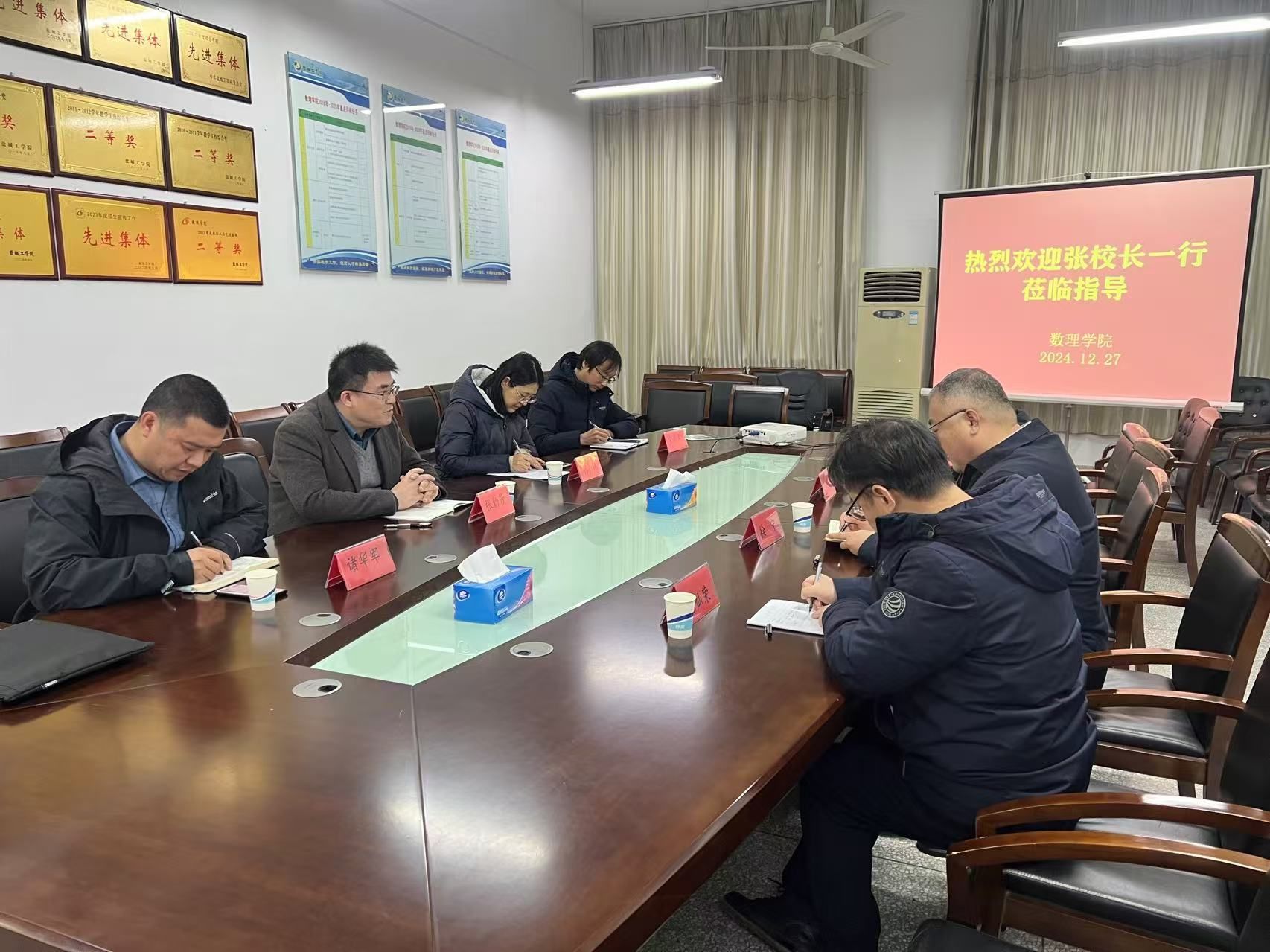12月27日下午,校党委常委、副校长张勤芳到数理学院调研学科与学位点建设工作。党委研究生工作部部长、研究生院院长、学科建设办公室主任许伟、研究生院副院长、学科建设办公室副主任诸华军、研究生院学科建设办公室科长宋冬冬陪同。数理学院院长徐宁、党总支书记魏伟华、副院长田灿荣参加。