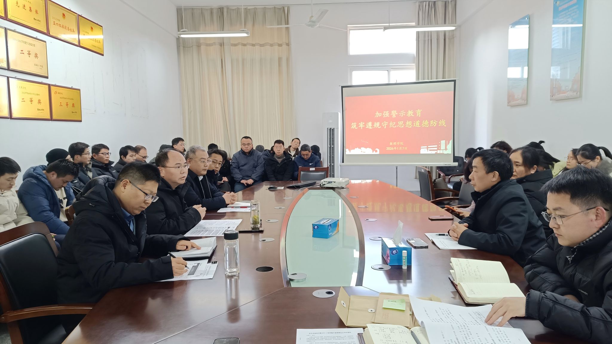 2026年1月7日下午,数理学院在博学楼B512会议室召开警示教育学习会,会议由学院党总支书记魏伟华主持,全体教职工参加。
