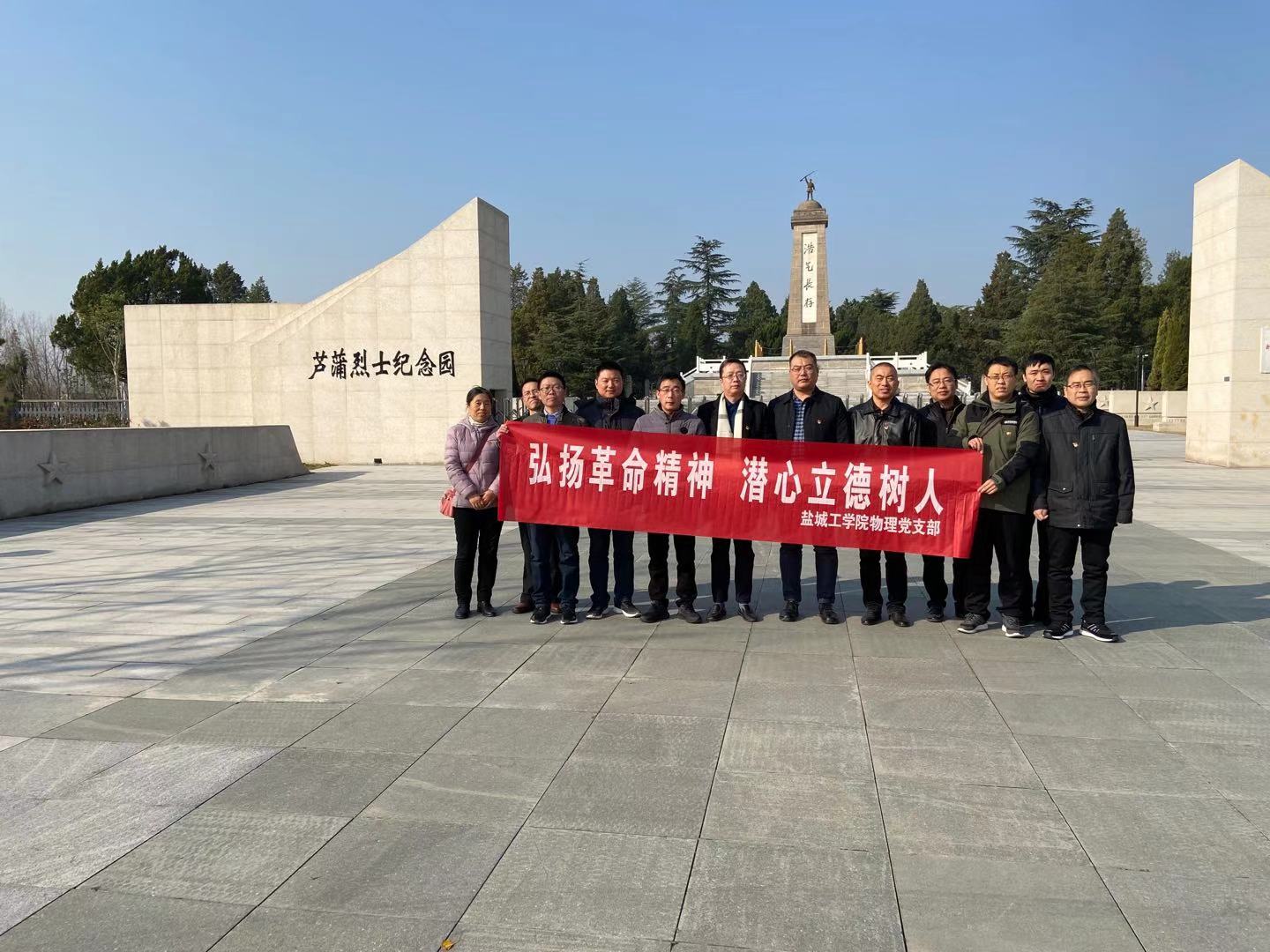 为提高支部的战斗堡垒作用和党员教师的先锋模范作用,11月29日,数理学院物理支部组织全体党员赴阜宁县芦蒲烈士陵园开展以“弘扬革命精神,潜心立德树人”为主题的党日活动,接受革命传统教育。