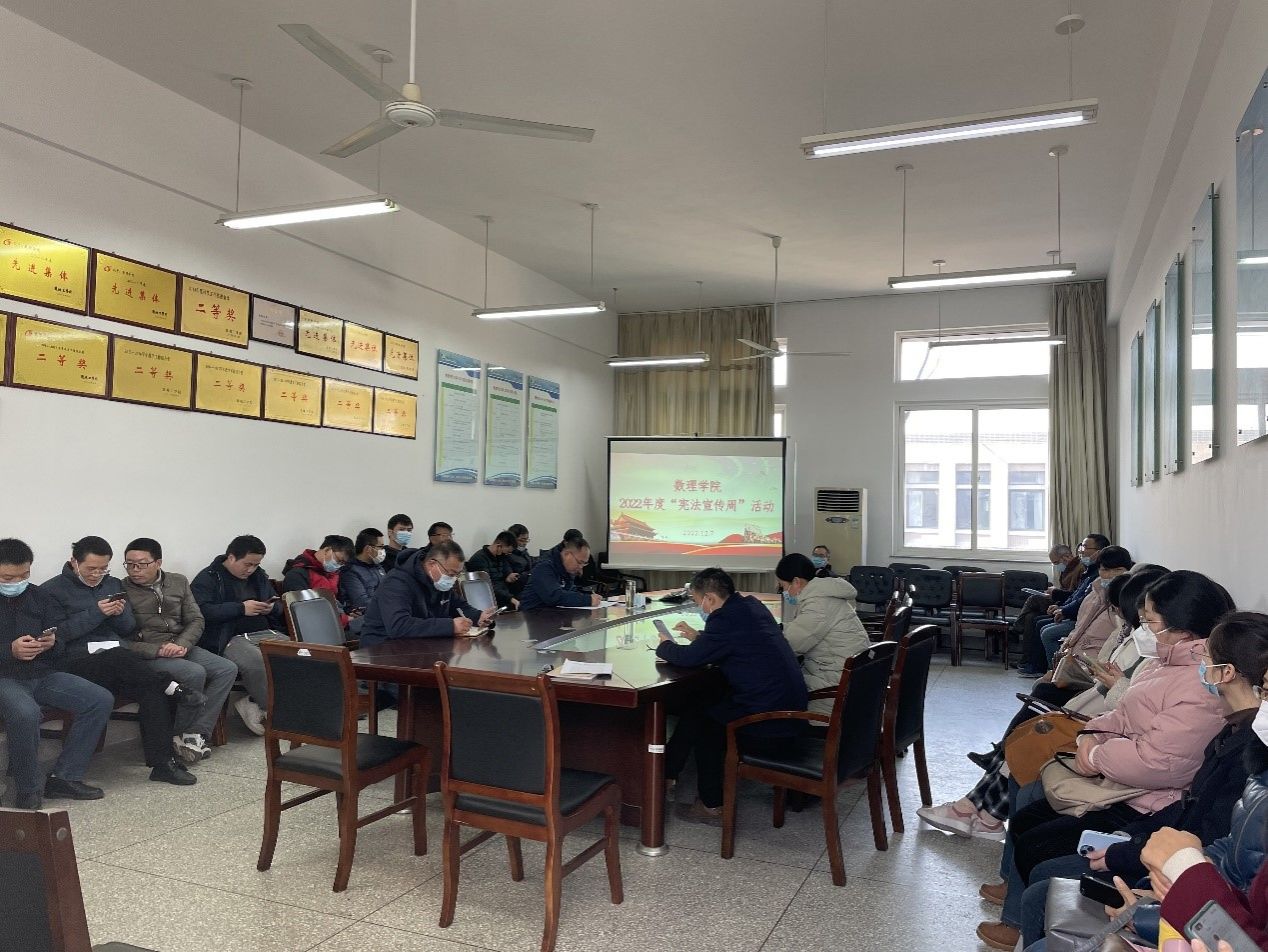 12月7日下午,Kaiyun官方网站支在希望大道校区博学楼B512会议室,组织开展“学习宣传贯彻党的二十大精神,推动全面贯彻实施宪法”主题活动。党总支书记魏伟华主持,学院全体教职工参加。
