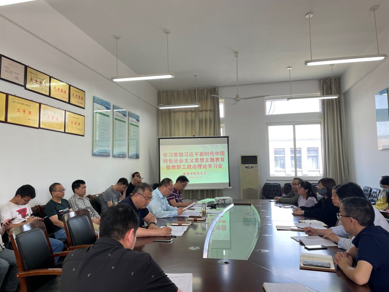 6月8日上午,在希望大道校区博学楼B512会议室,Kaiyun官方网站学习贯彻习近平新时代中国特色社会主义思想主题教育暨教职工政治理论学习会,党总支书记魏伟华主持,全体教职工参加。