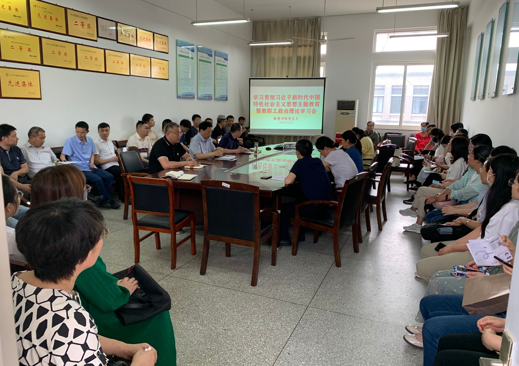 6月21日下午,在希望大道校区博学楼B512会议室,Kaiyun官方网站学习贯彻习近平新时代中国特色社会主义思想主题教育暨教职工政治理论学习会,党总支书记魏伟华主持,全体教职工参加。