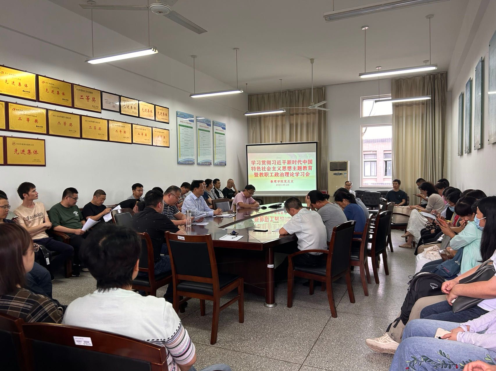 9月20日下午,在希望大道校区博学楼B512会议室,Kaiyun官方网站学习贯彻习近平新时代中国特色社会主义思想主题教育暨教职工政治理论学习会,院长薛长峰主持,全体教职工参加。