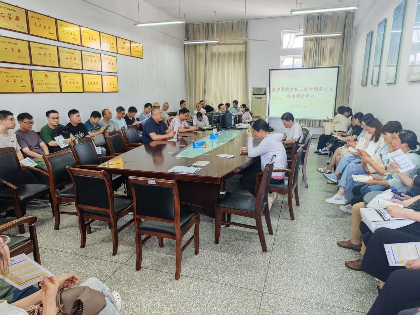6月25日下午,数理学院在博学楼B512会议室召开2025年春学期第八次教职工政治理论学习会,学院院长徐宁主持会议,全体教职工共同参与。